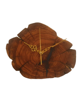 Les aiguilles dorées, fines et élégantes, renforcent le côté raffiné et moderne de la pièce tout en restant faciles à lire. Chaque modèle est unique, grâce aux formes organiques et aux nuances naturelles du bois, faisant de cette horloge un objet exclusif et intemporel.